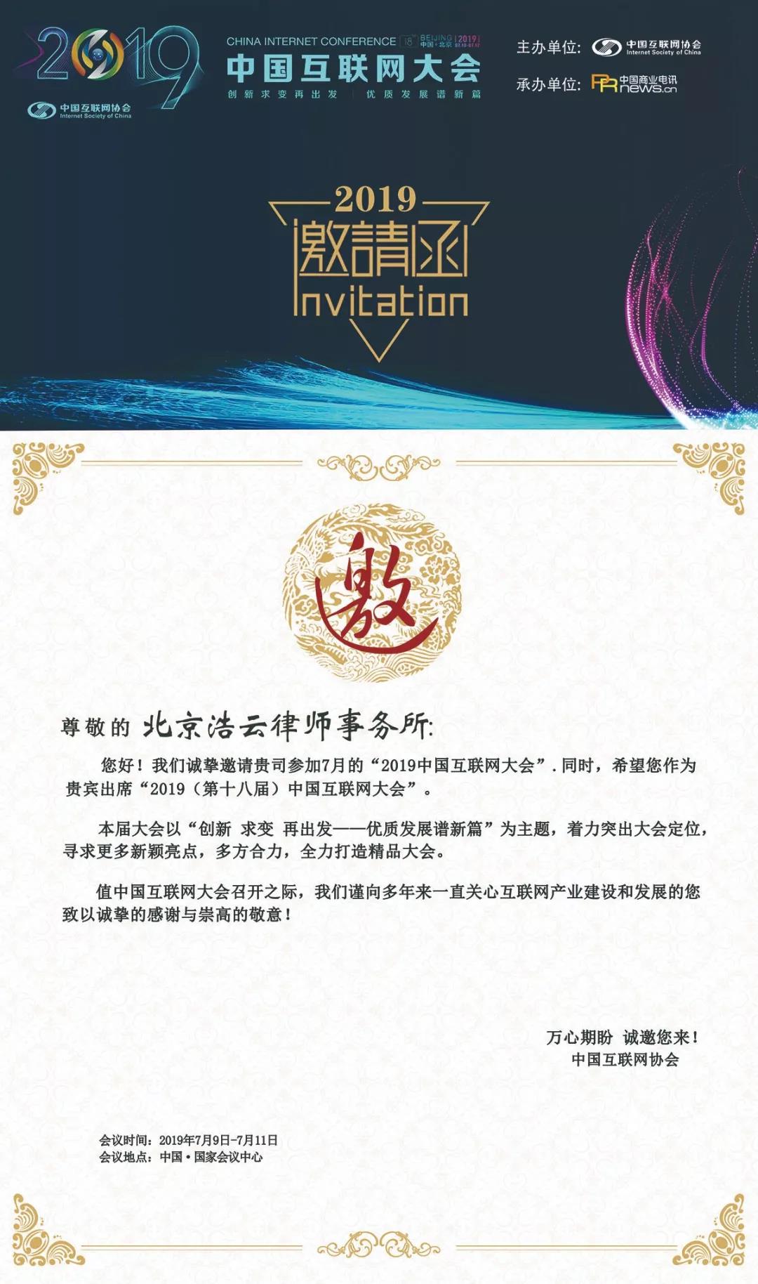 北京超凡国际律师事务所受邀出席2019第18届中国互联网大会